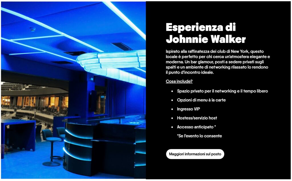 - Ospitalità & corporate: numerosi palchi VIP, club lounge (il “Johnnie Walker” in stile “newyorkese”) e pacchetti hospitality studiati per aziende che vogliono mixare business e vetrina.