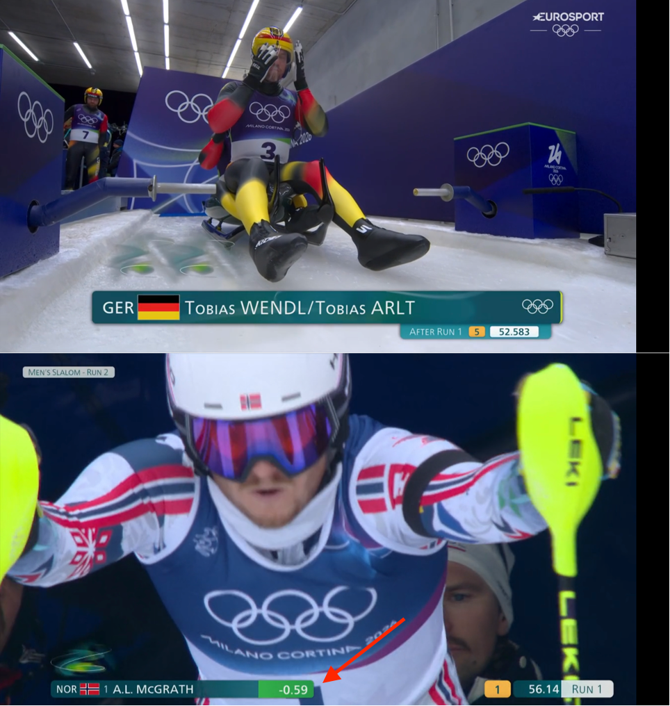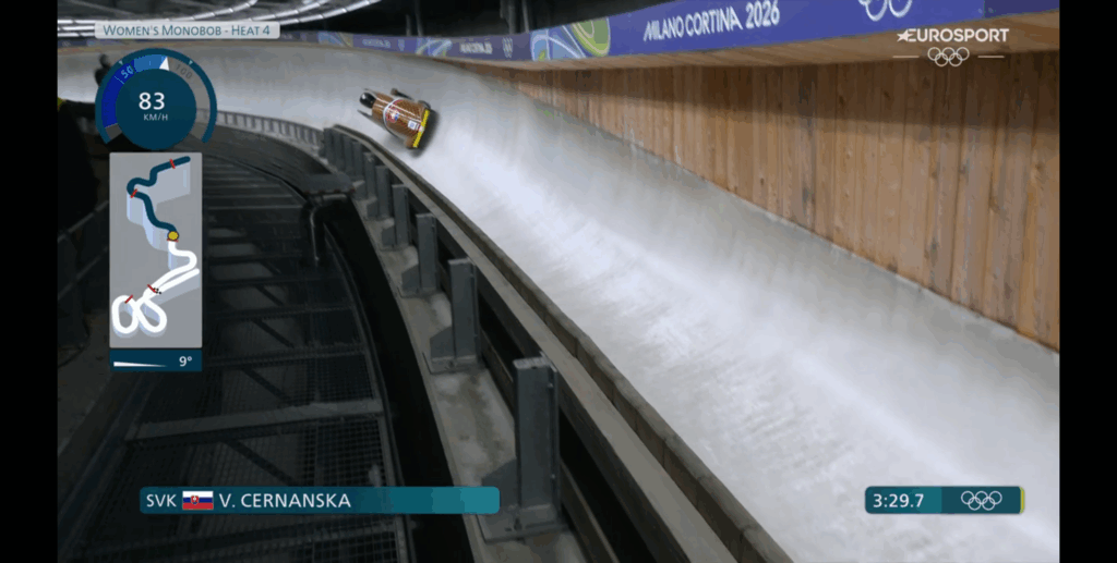 Una disomogeneità nelle grafiche delle varie discipline, che è emersa, a mio avviso anche nelle gare che si sono disputate lungo la Eugenio Monti di Cortina, in quanto (soltanto) nelle gare di bob (non in quelle di slittino e/o di skeleton) abbiamo visto impresso non solo un tachimetro con la velocità in tempo reale, ma anche la ricostruzione grafica del tracciato della discesa con la progressiva indicazione in tempo reale dell’esatto punto in cui si trovava il bob, vedendo impressa nella parte bassa del teleschermo l’esatta pendenza di quel determinato punto della pista.