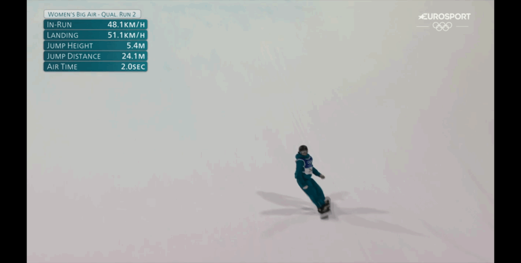 Quanto, invece, ai dati raccolti in diretta (davvero notevoli per la quantità e la qualità delle rilevazioni) durante, ad esempio, i salti dello snowboard o dello sci acrobatico, gli stessi, a mio avviso, avrebbero potuto essere maggiormente valorizzati se, a fianco di ciascuno di essi, fosse stato impresso anche la (miglior) prestazione fatta registrare dall’atleta in quel momento in testa.