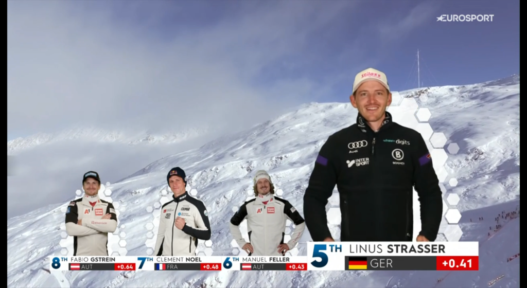 Le esaminiamo partendo, come sempre, da quelle che hanno preceduto l’inizio della gara: la presentazione dei top Athlets, ad esempio, non è stata più graficata a tutto schermo, venendo infatti proiettate brevi clip di ogni atleta, la cui immagine rimaneva comunque sullo sfondo affiancata a quella degli altri sciatori.