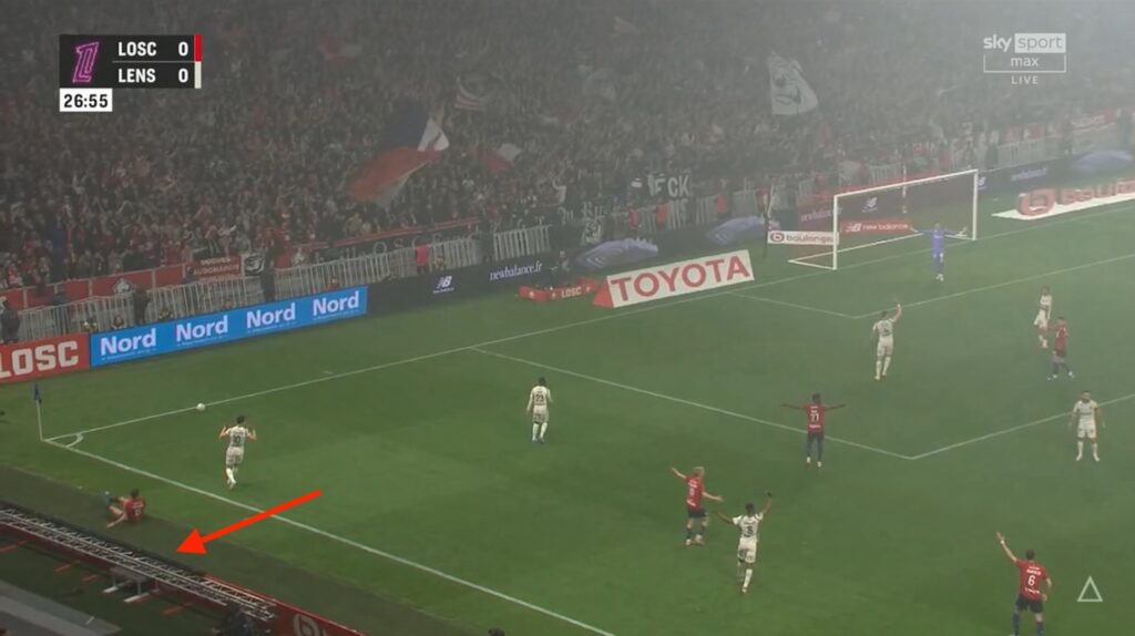 Al Pierre Mauroy di Lilla, durante la ventottesima giornata di Ligue 1, infatti, era presente sugli ultimi 16 metri (circa) del lato lungo del terreno di gioco, in corrispondenza dell’area sinistra di rigore, quella fila di camere collocate l’una vicina all’altra progettate per catturare una serie di immagini da un operatore (da remoto), che aveva la possibilità di scorrere senza soluzione di continuità da una all’altra simulando riprese provenienti da una camera in movimento.