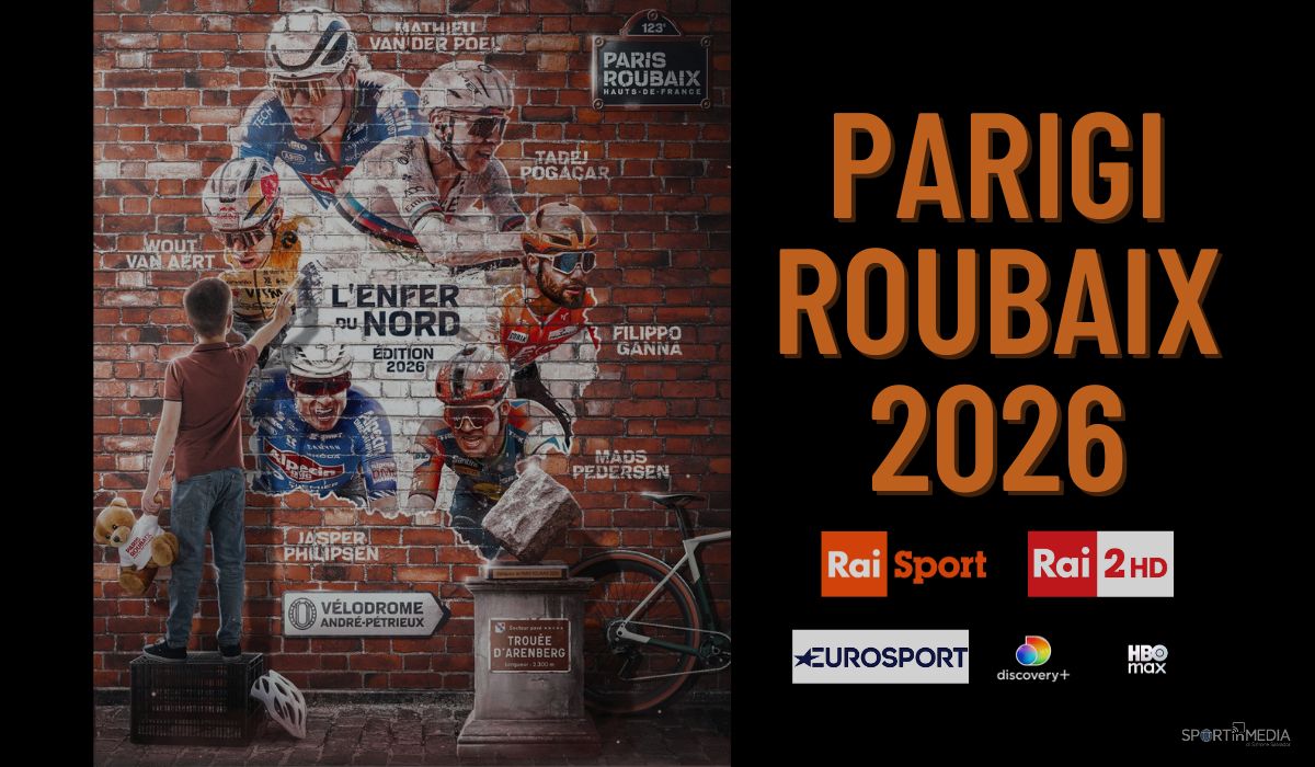 La Parigi-Roubaix 2026 è visibile in chiaro su Rai Sport HD dalle 12:45 e su Rai 2 dalle 14:45. In streaming è disponibile su Discovery+, Eurosport e HBO Max dalle 10:30.