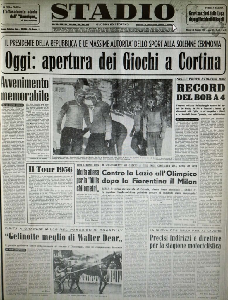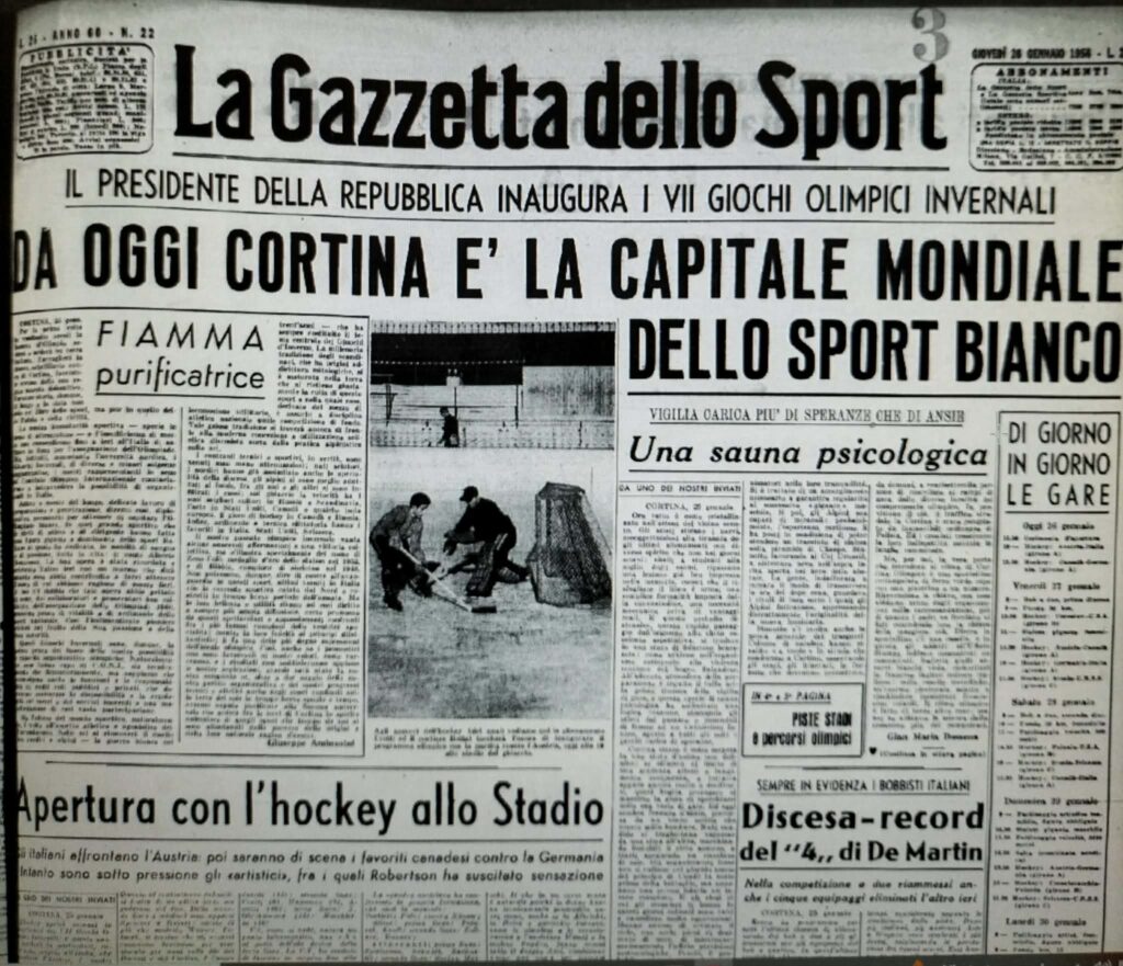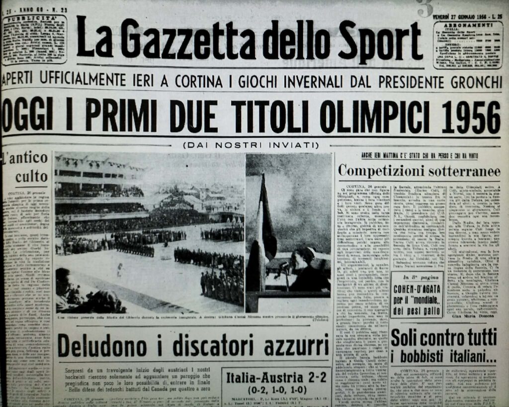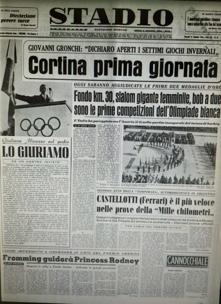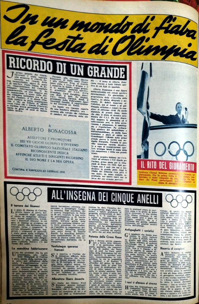 Partiamo questa volta, senza indugi, in modo inconsueto. Subito con March Moccia la rassegna cartacea di Cortina 1956 e di Torino 2006. Come si può notare il numero di questa settimana è dedicato alle Olimpiadi sulle nevi italiane.