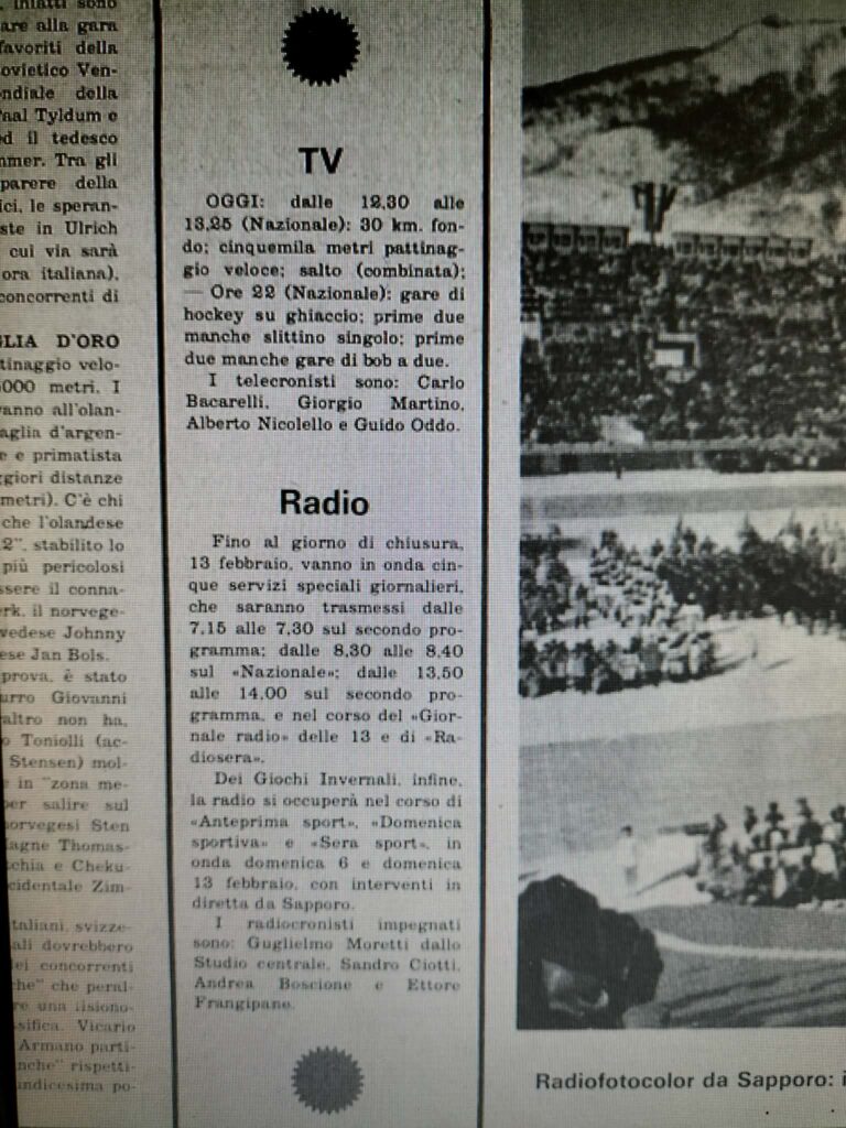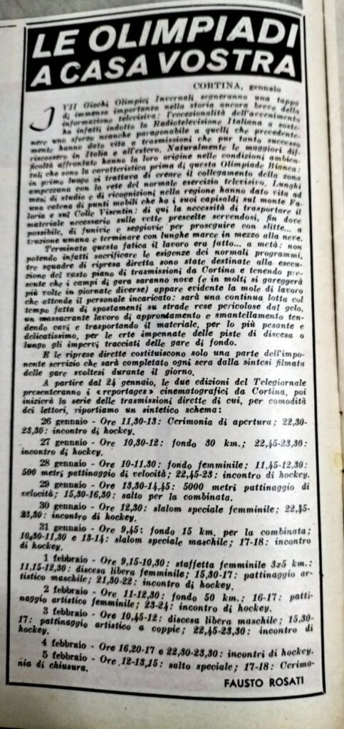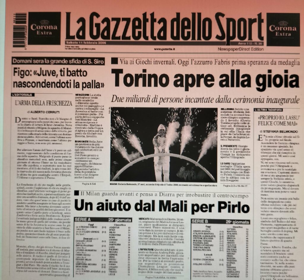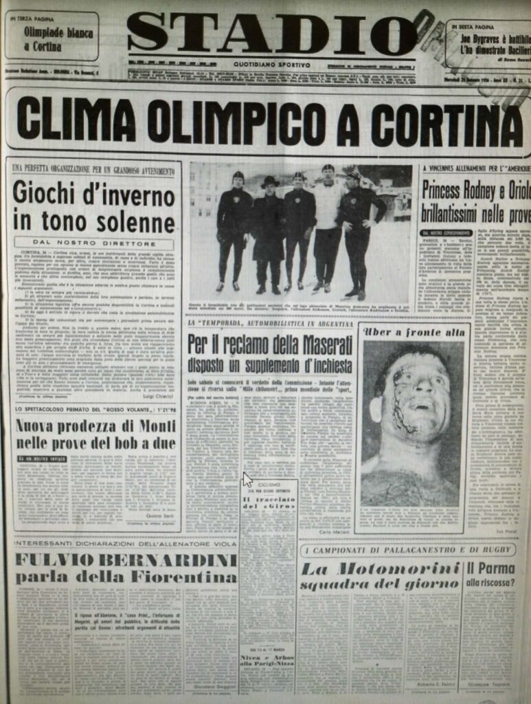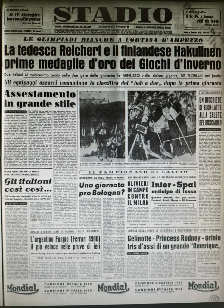 Partiamo questa volta, senza indugi, in modo inconsueto. Subito con March Moccia la rassegna cartacea di Cortina 1956 e di Torino 2006. Come si può notare il numero di questa settimana è dedicato alle Olimpiadi sulle nevi italiane.