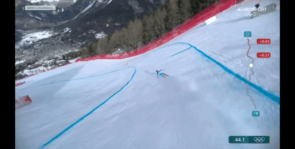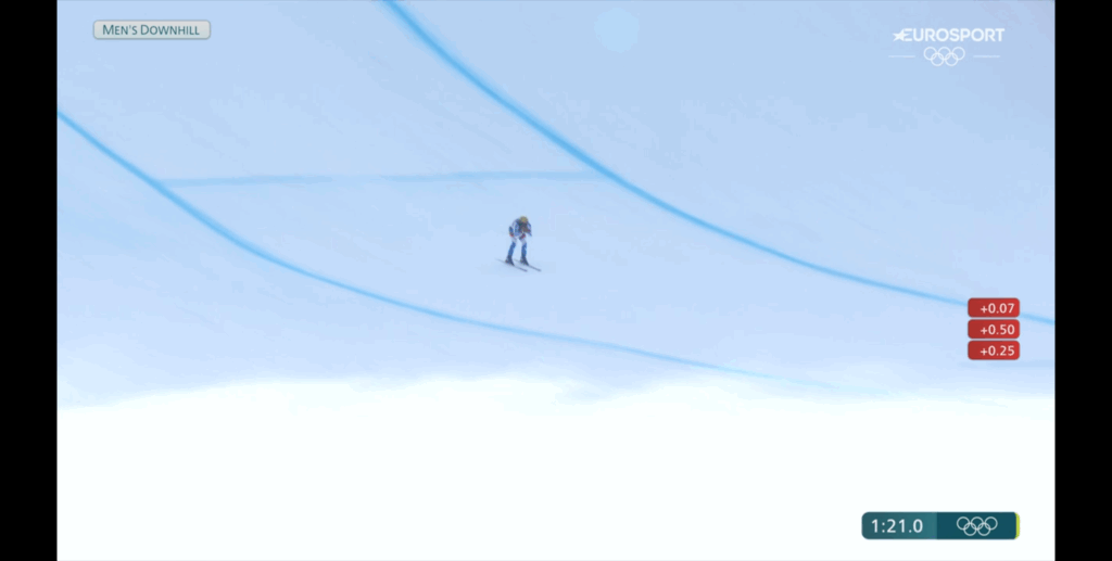 Al netto di quelle che possono essere le opinioni soggettive di ciascuno di noi, credo che tutti si possa essere d’accordo sul fatto che, in occasione di una gara dei giochi olimpici, non sia stato bello vedere (purtroppo in più occasioni, fin dall’inizio) il taglio della gara di qualche atleta, privandoci della possibilità di assistere alla performance integrale di tutti gli sciatori (nel caso di specie è stato tagliato il passaggio in un punto iconico, e decisivo, della pista, la Carcentina).