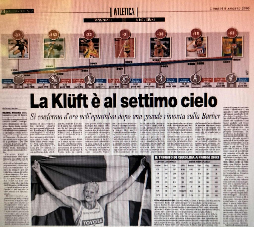 Per le prove multiple femminile le 7 prove della vincitrice, la straordinaria svedese Kluft.