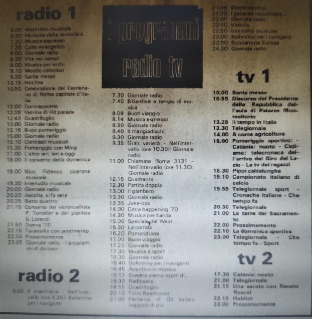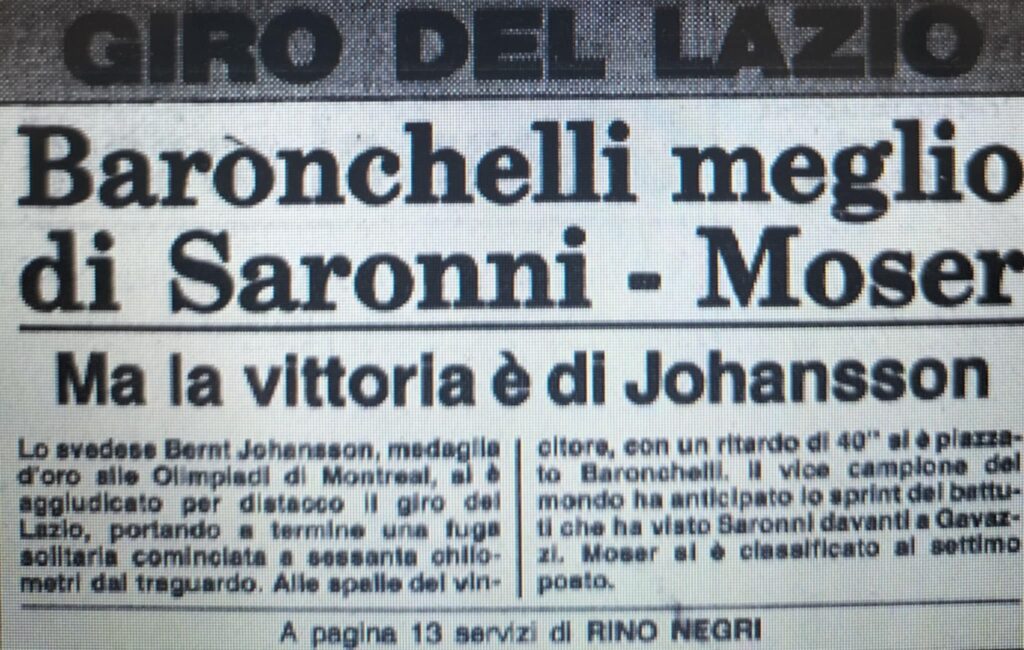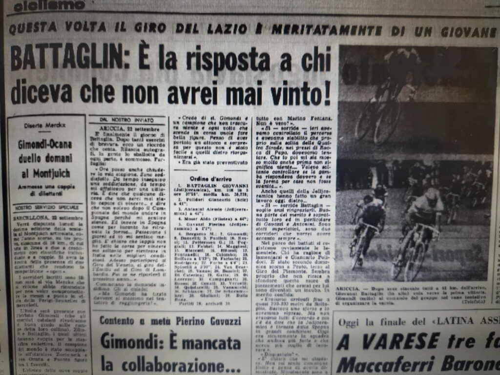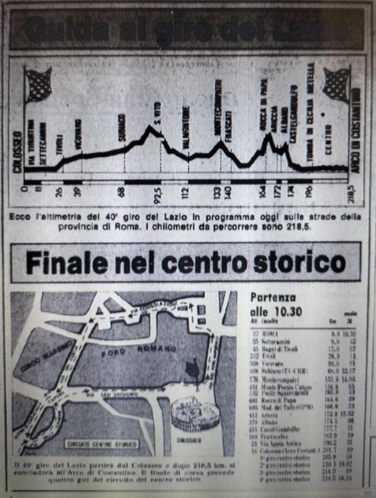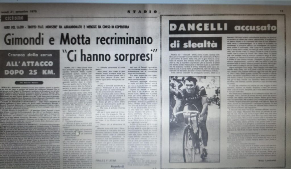 Il centenario della presa di Roma del 20 settembre 1970, viene celebrato dal ciclismo giustappunto con un arrivo del Giro del Lazio davanti alla Breccia di Porta Pia. Il servizio dalla Domenica Sportiva di quello storico giorno descrive ampie fasi della tappa e la vittoria di Michele Dancelli su Italo Zilioli, in una volata a due e uno strascico polemico, visto che il bresciano viene accusato di scarsa collaborazione.