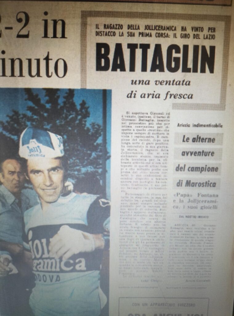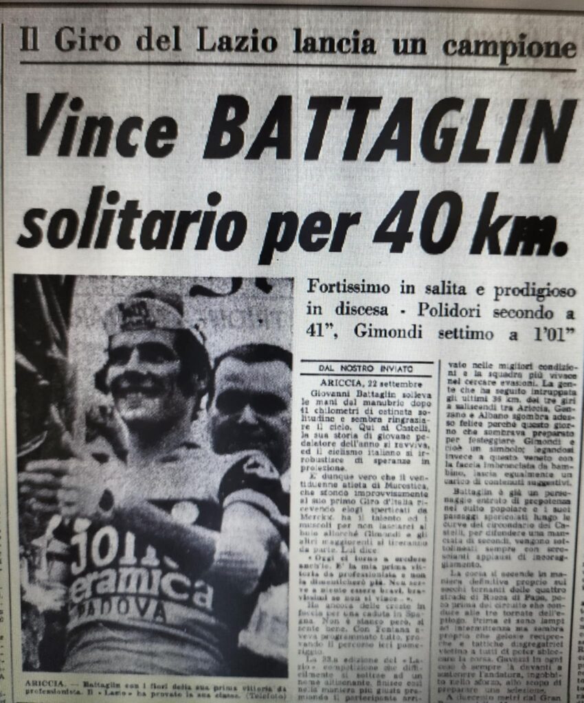 Prima vittoria da neoprofessionista di Giovanni Battaglin con azione isolata nel 1973.