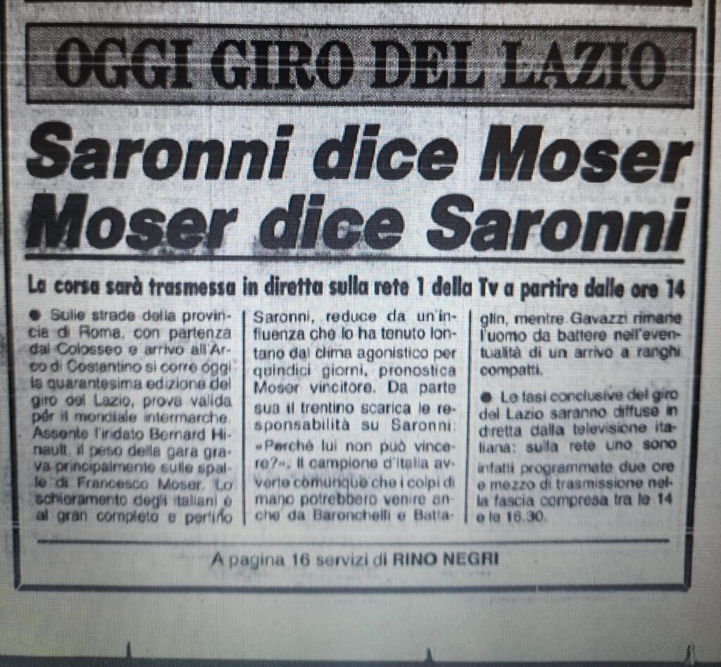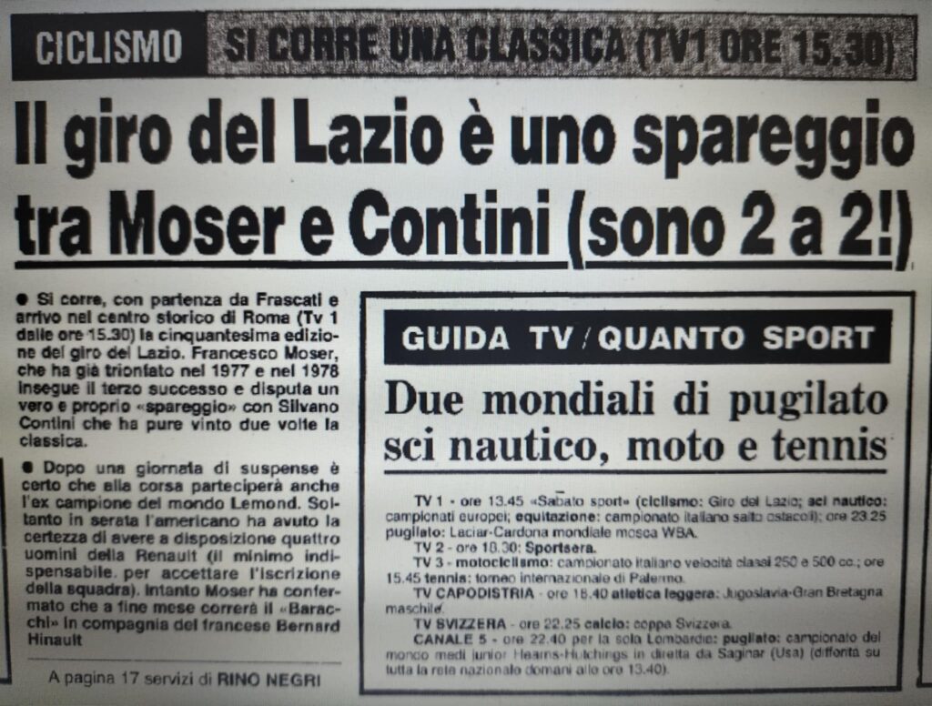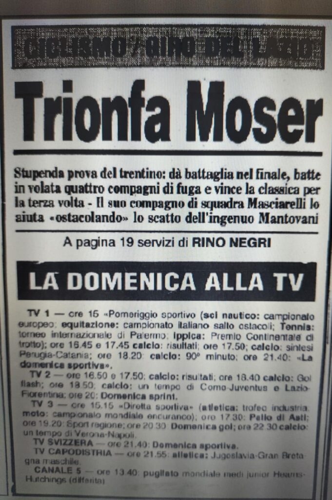 Nel 1984, immagini del tutto inedite per la rete ed esclusive della nostra testata, ancora una vittoria di Francesco Moser.