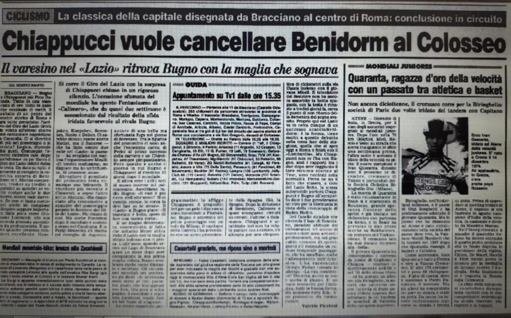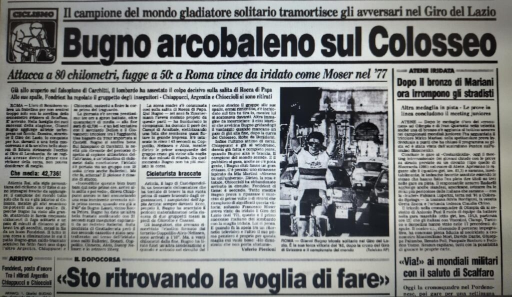 RASSEGNA STAMPA | Ed ora i ritagli di March Moccia, da ringraziare ancora una volta per lo splendido e ricco contributo, riferito a varie edizioni descritte dai video. C’è anche una foto del 1992 dove vediamo il vincitore Bugno in compagnia del telecronista Adriano De Zan e del giornalista Lillo Pietropaoli.