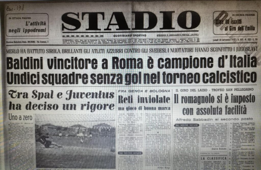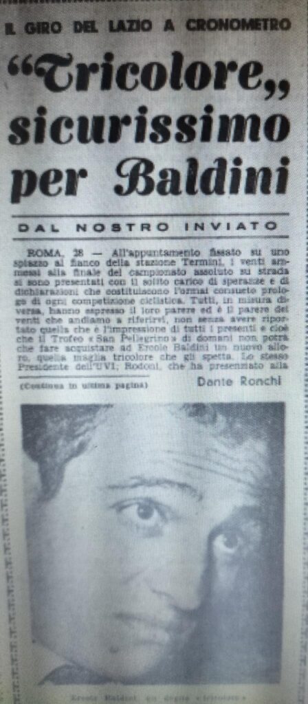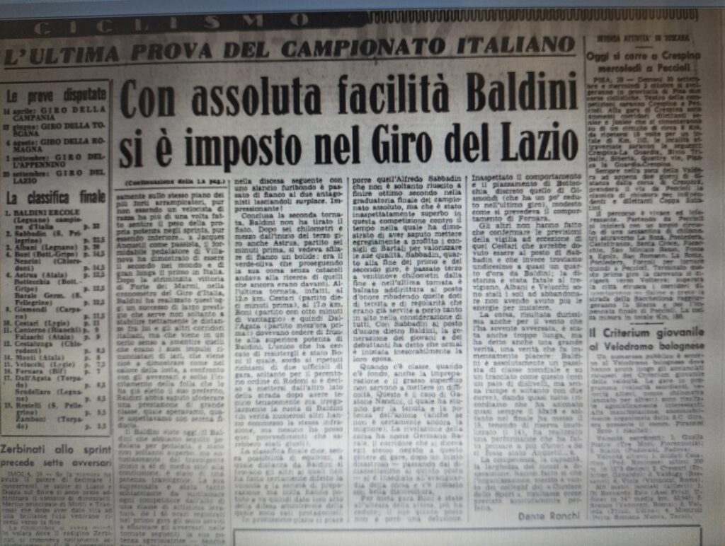A cronometro l’edizione del 1957, valida per il campionato italiano. Vince l’elettrotreno di Forlì, il campione olimpico Ercole Baldini.