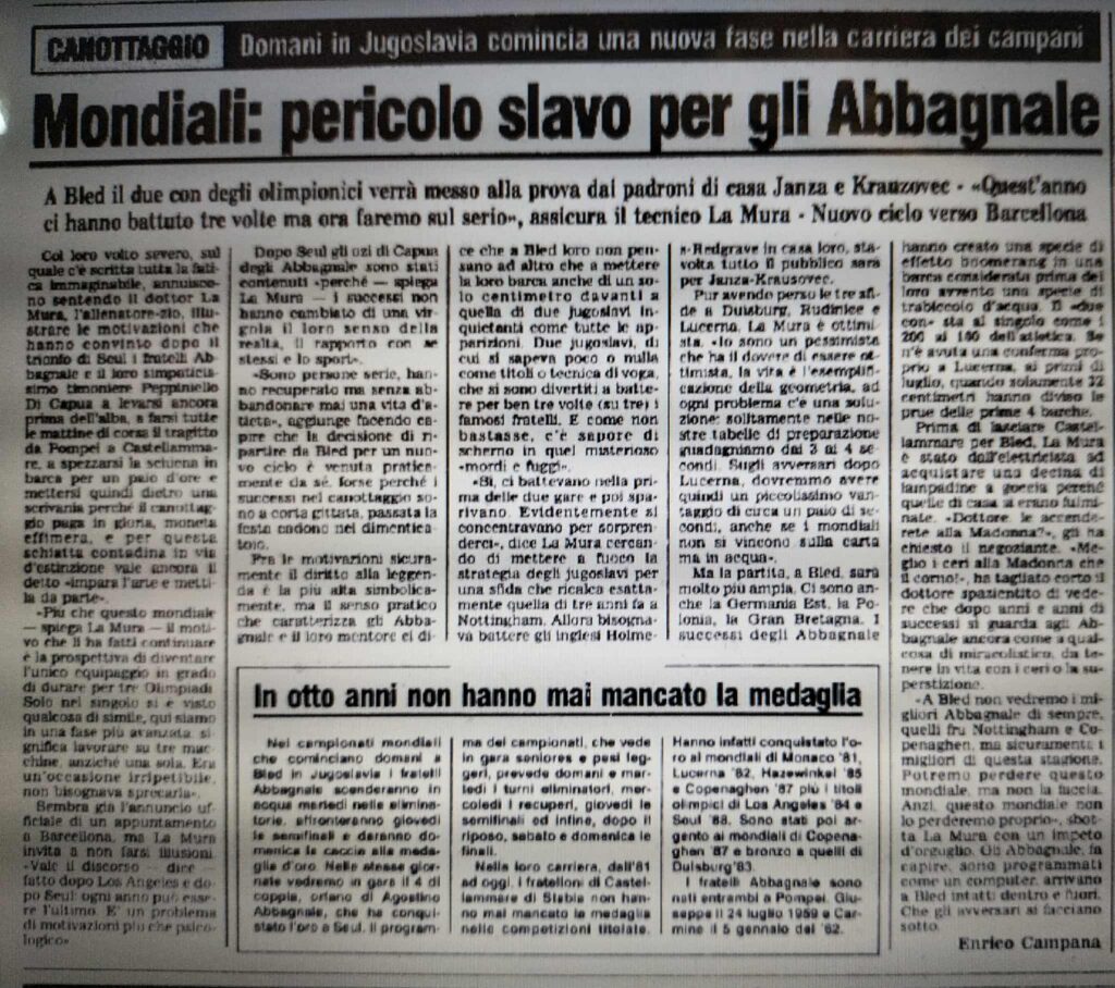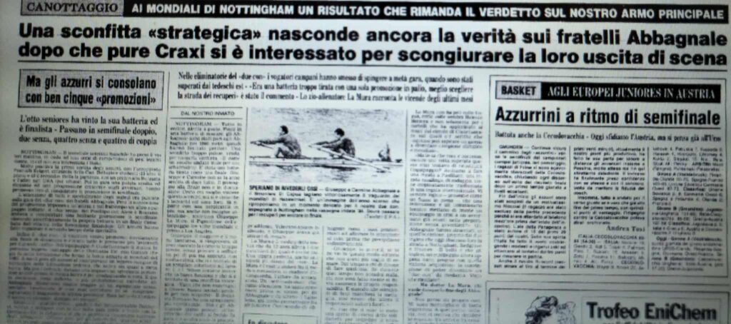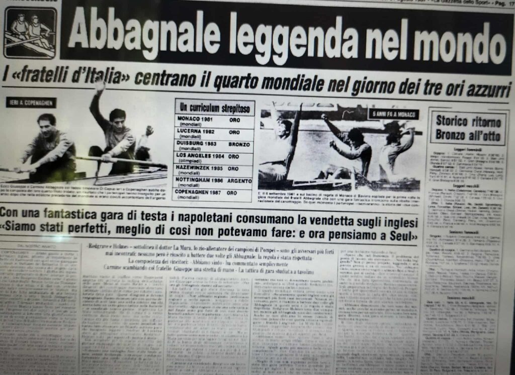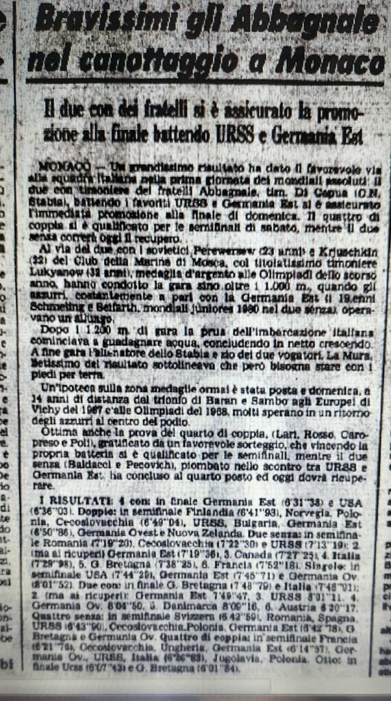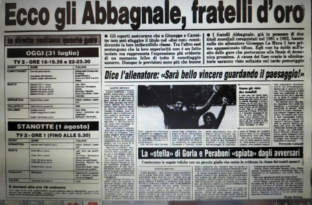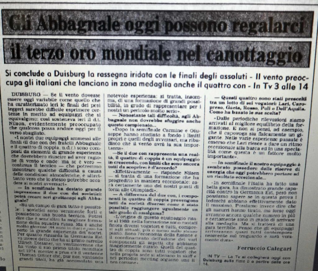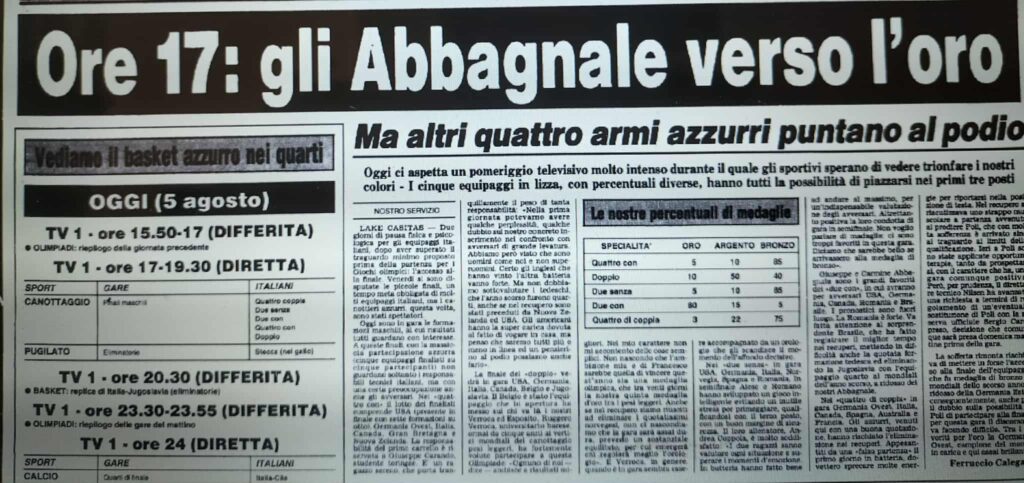 Chiudiamo con un editoriale di Giampiero Ormezzano per LA STAMPA: il testo testimonia, come nessuno avrebbe potuto fare meglio il sentimento della stampa italiana verso gli Abbagnale, sempre vincenti, eppure messi talvolta in secondo piano, ad esempio, dai capricci di Maradona di quell’estate.