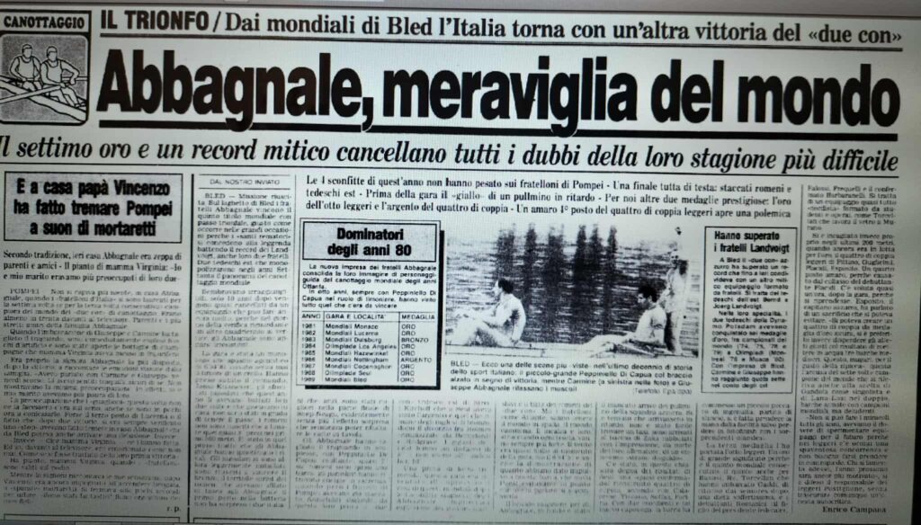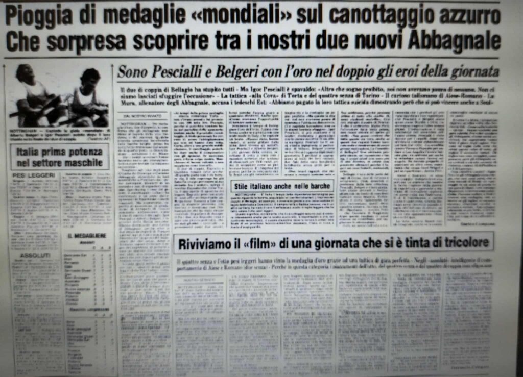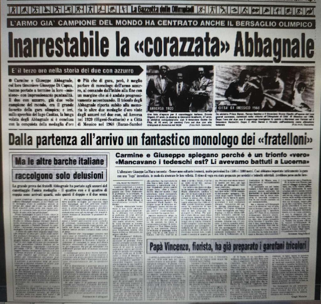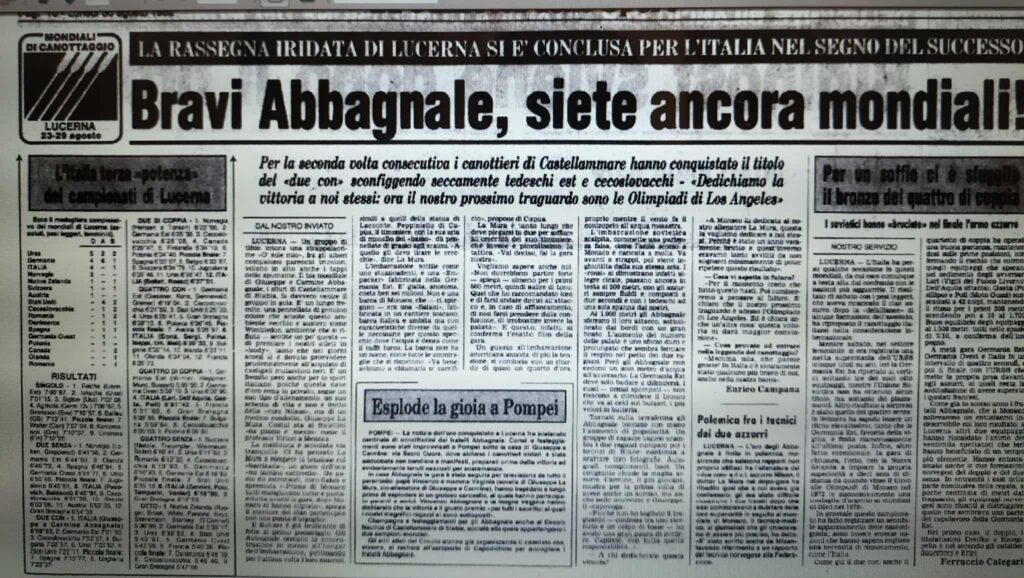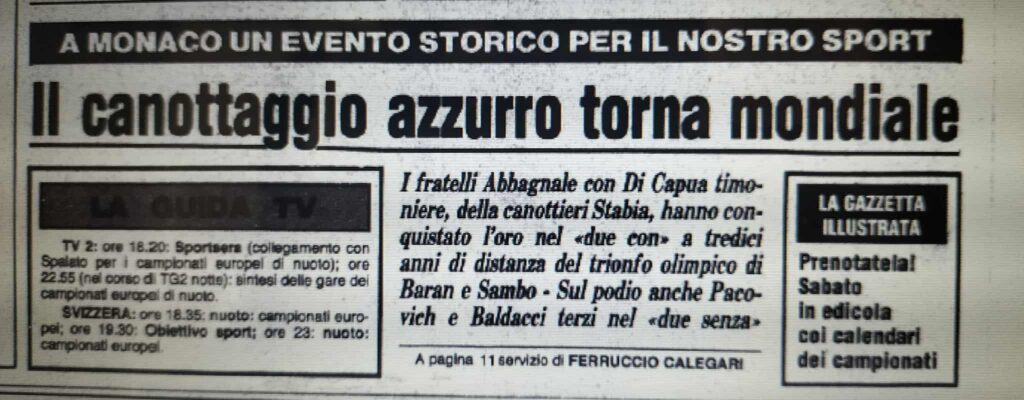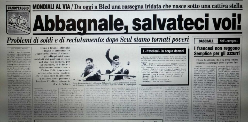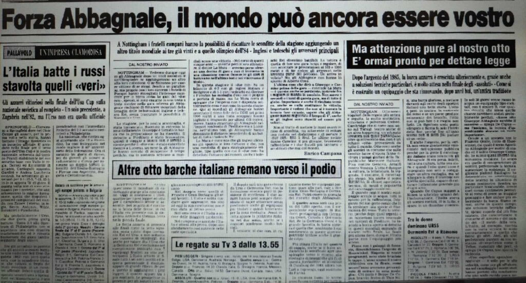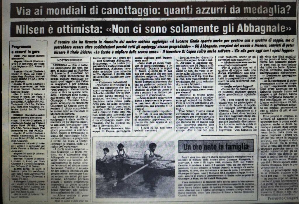 Chiudiamo con un editoriale di Giampiero Ormezzano per LA STAMPA: il testo testimonia, come nessuno avrebbe potuto fare meglio il sentimento della stampa italiana verso gli Abbagnale, sempre vincenti, eppure messi talvolta in secondo piano, ad esempio, dai capricci di Maradona di quell’estate.