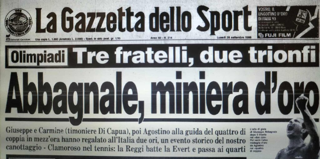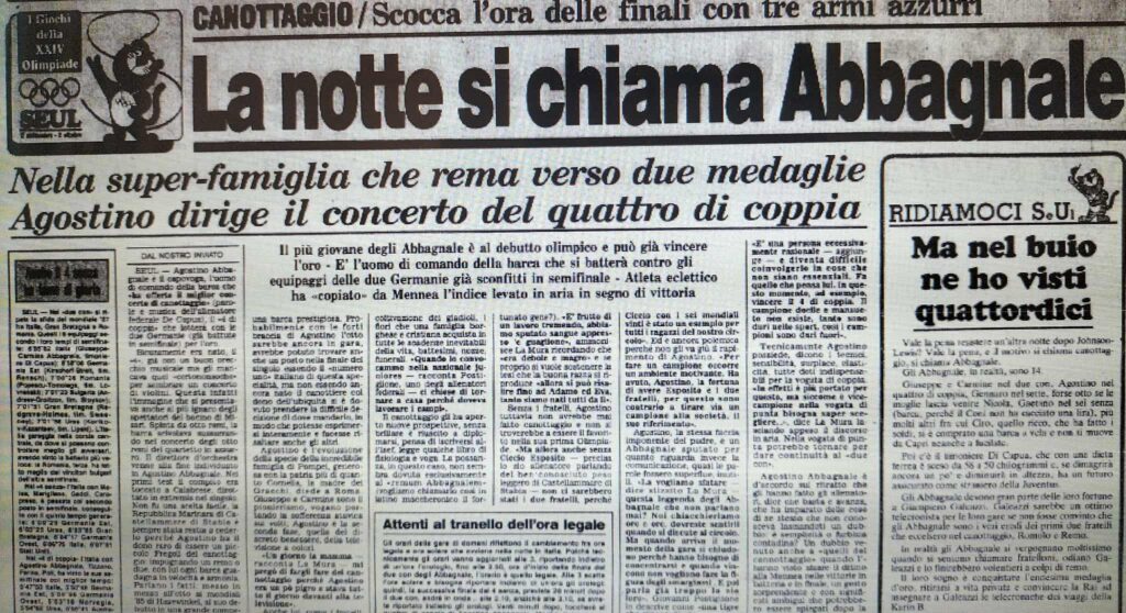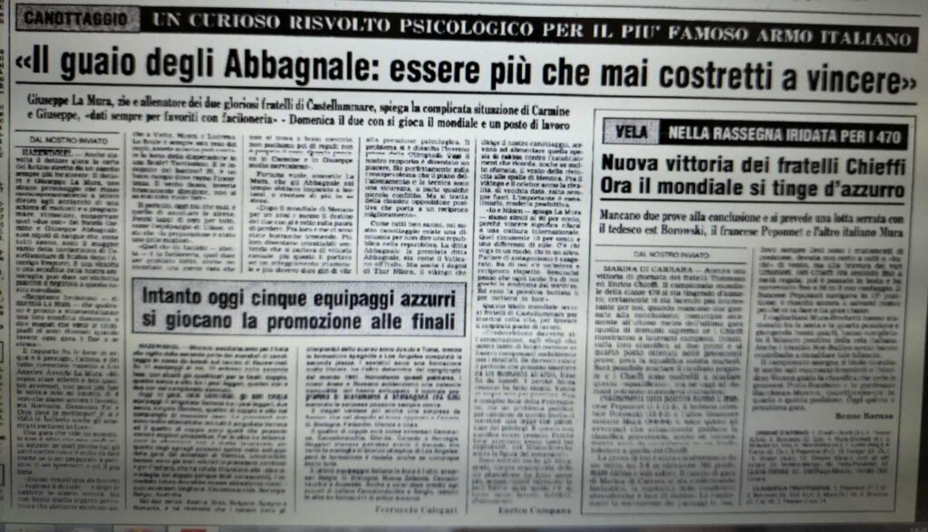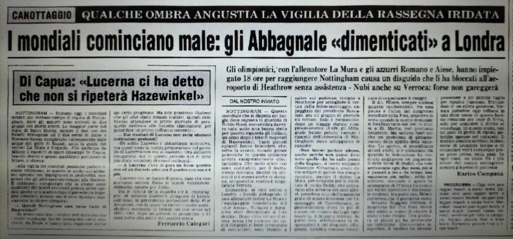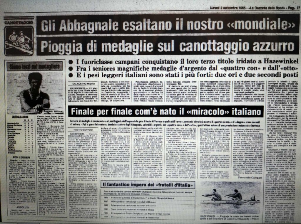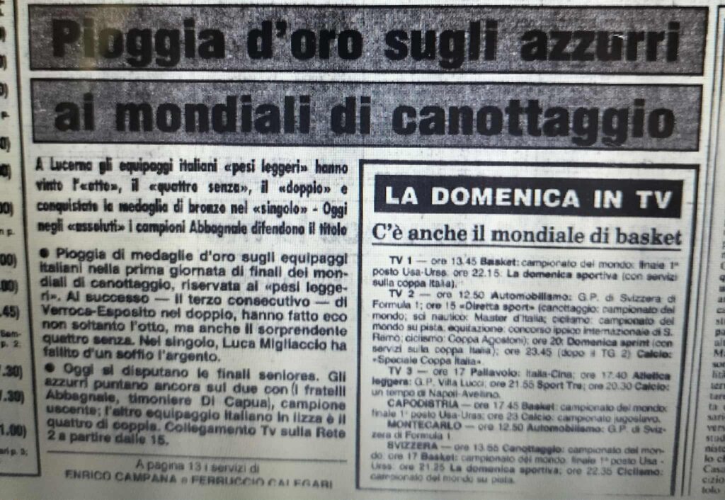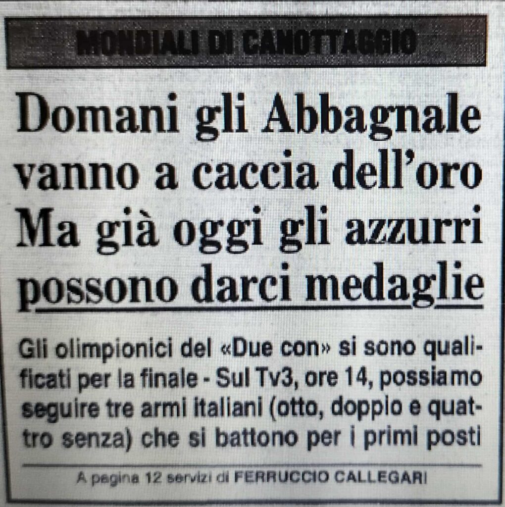 Chiudiamo con un editoriale di Giampiero Ormezzano per LA STAMPA: il testo testimonia, come nessuno avrebbe potuto fare meglio il sentimento della stampa italiana verso gli Abbagnale, sempre vincenti, eppure messi talvolta in secondo piano, ad esempio, dai capricci di Maradona di quell’estate.