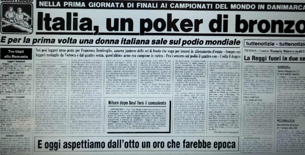 A tutti un caro saluto, un ringraziamento per l’ospitalità a Sportinmedia. Per la prossima settimana gli anni Novanta dei nostri Abbagnale (VEDI), i nuovi titoli, il canto del cigno, il ritiro e il passaggio del testimone ad Agostino Abbagnale, nel frattempo tornato in efficienza dopo varie vicissitudini fisiche.